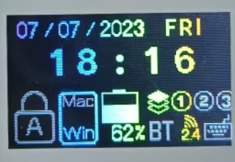 - The above example is showing: Keyboard is in Win mode and layer 1, with a 62% battery and connected to your computer in 2.4ghz.