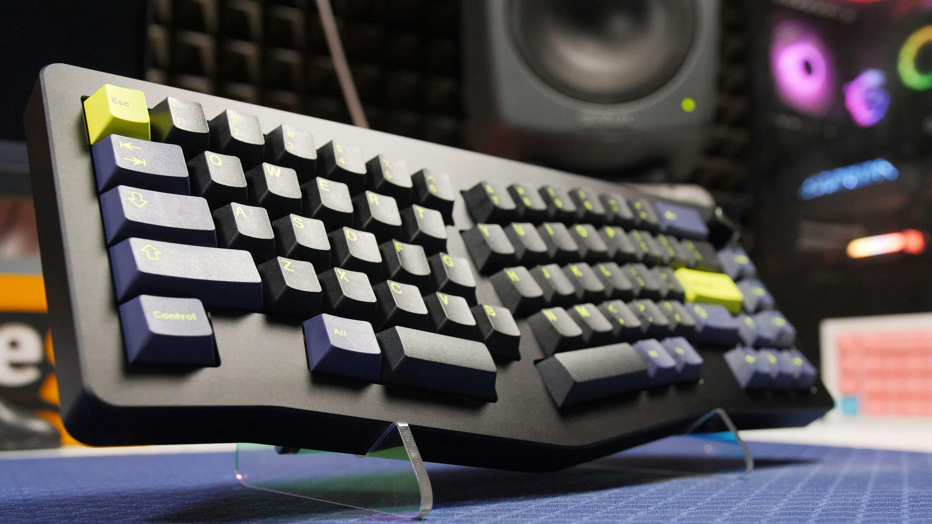The Tide Alice combines a gasket-mounted FR4 plate and five-layer sound dampening for a deep, thocky feel, with ergonomic Alice layout and hot-swappable switches ensuring comfort and customization.